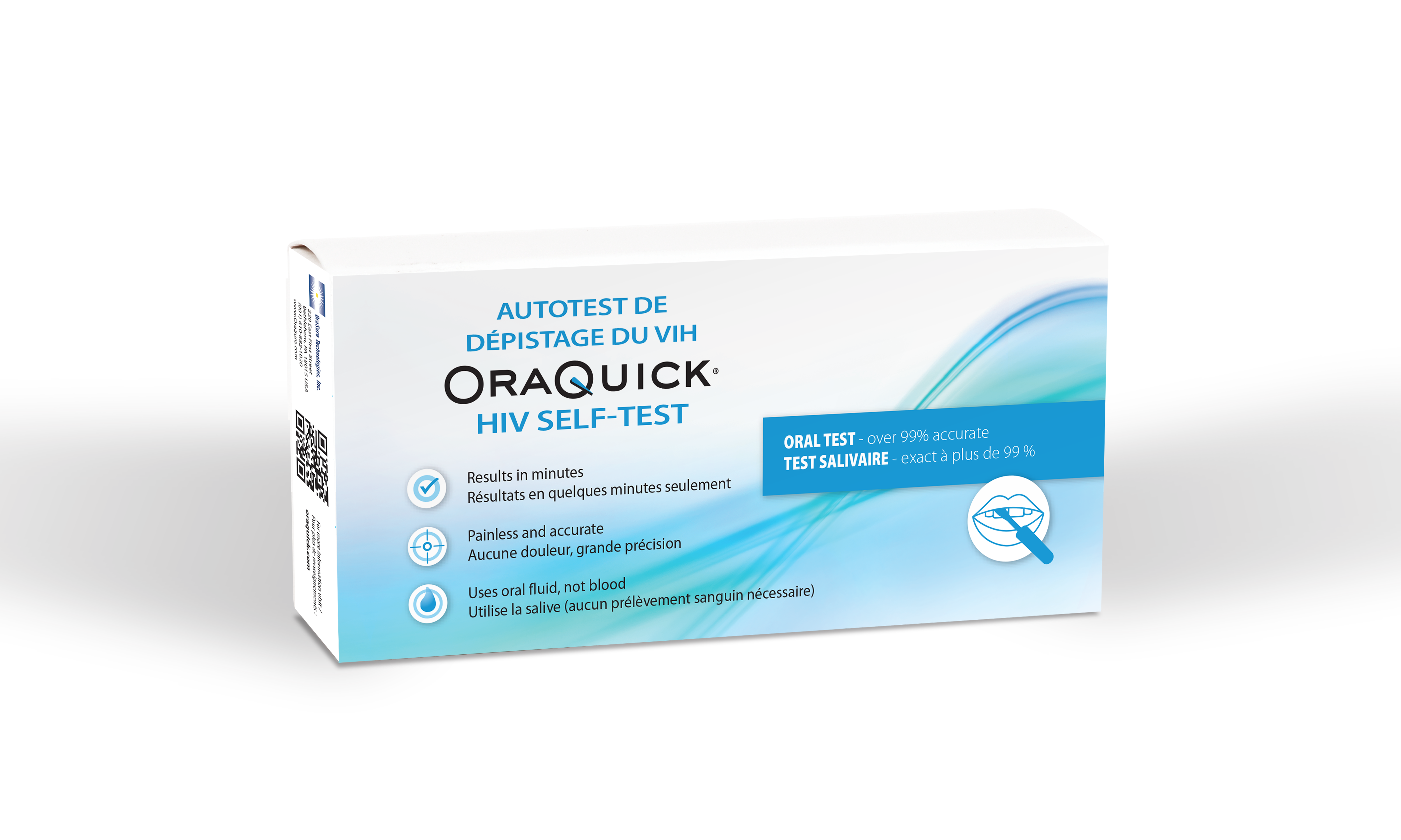 The OraQuick™ HIV Self-Test is a point-of-care rapid antibody test. It is Canada’s first oral HIV self-test and detects antibodies for both HIV-1 and HIV-2, enabling individuals to find out their HIV status with a simple oral swab in as little as 20 minutes. The simplicity of the product makes it ideal for testing in a range of locations, including in the privacy of one’s home, at the pharmacy, or at community-based testing events.